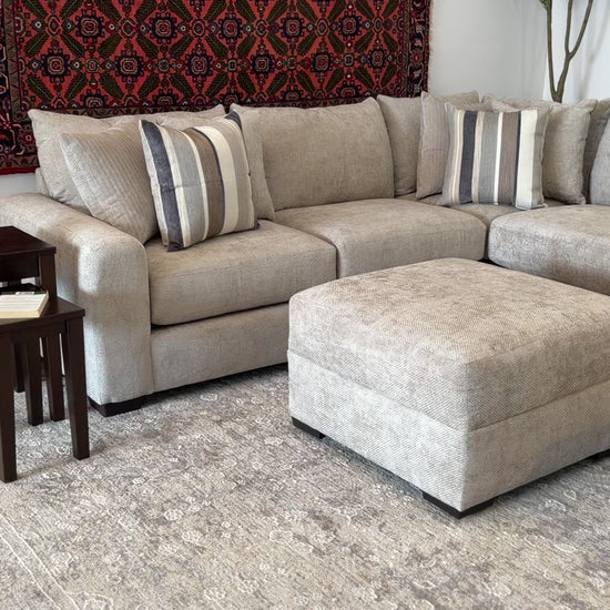 This spacious, American-made sectional offers generous seating, practical functionality, and everyday comfort. Designed with versatility in mind, it features a well-proportioned layout that works beautifully in larger living spaces while maintaining a clean, modern silhouette.