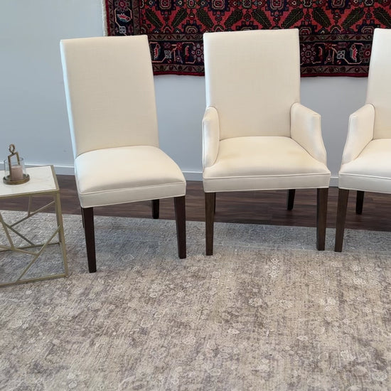 This bundle includes a combination of arm and side chairs, providing a balanced and sophisticated dining arrangement. With their tall backs, tailored upholstery, and solid construction, they deliver both comfort and architectural presence around the table.