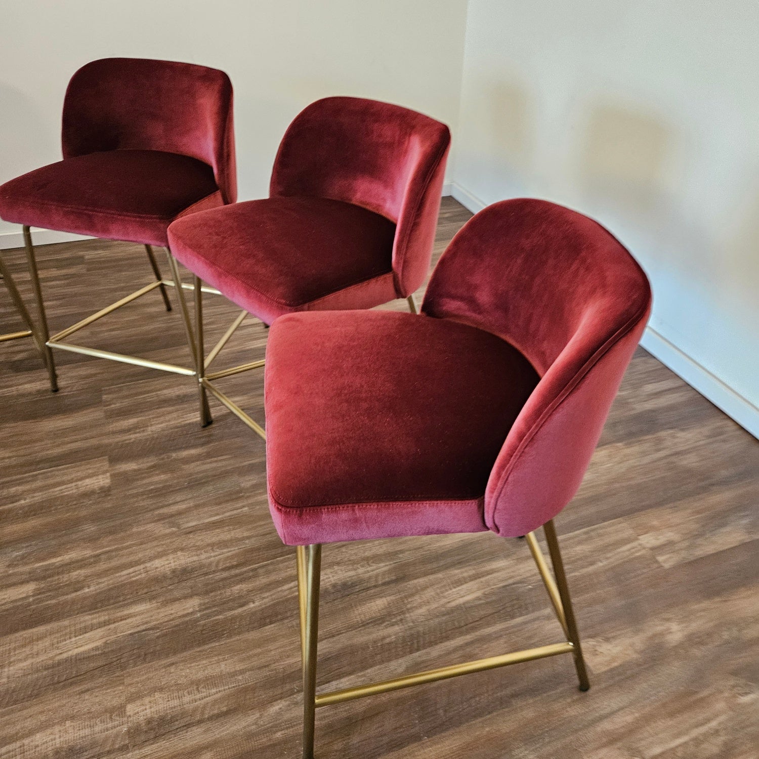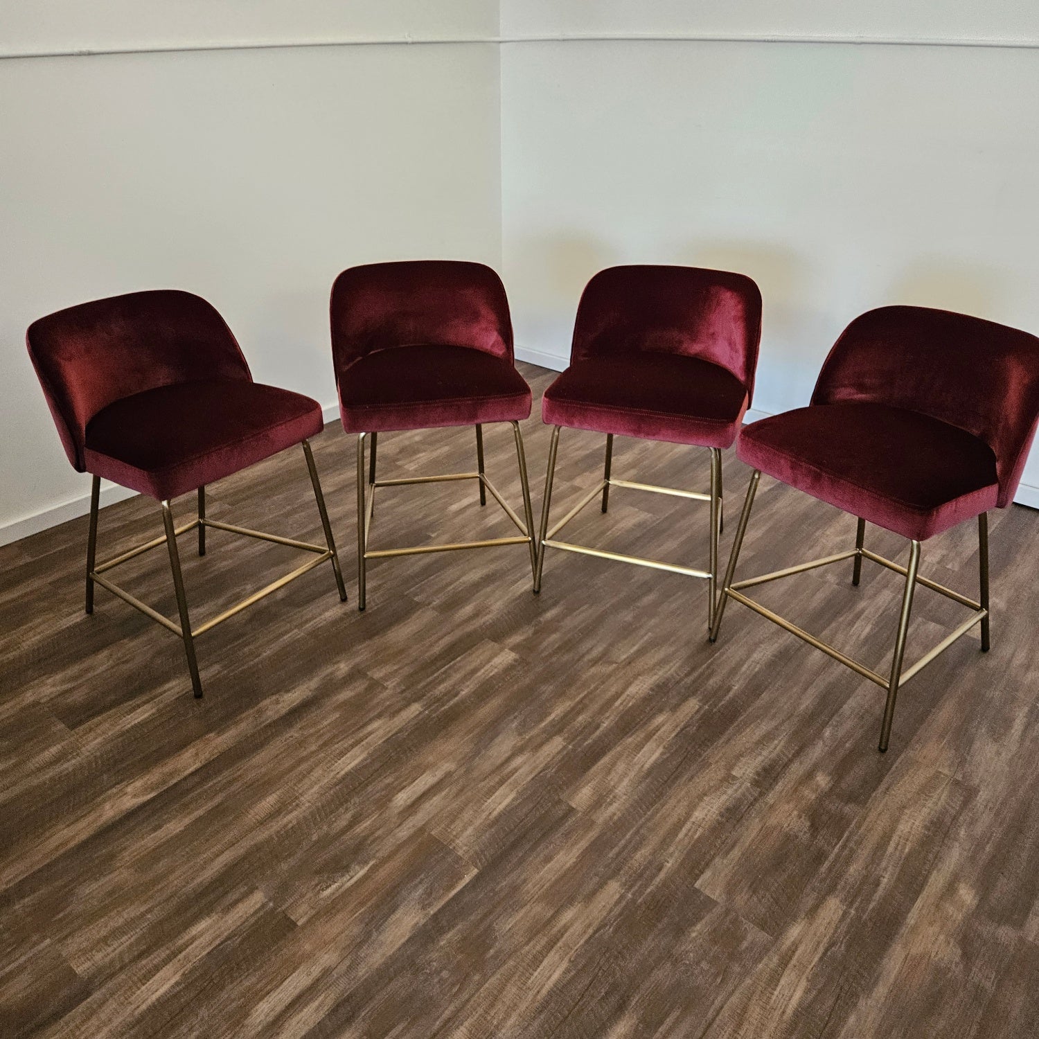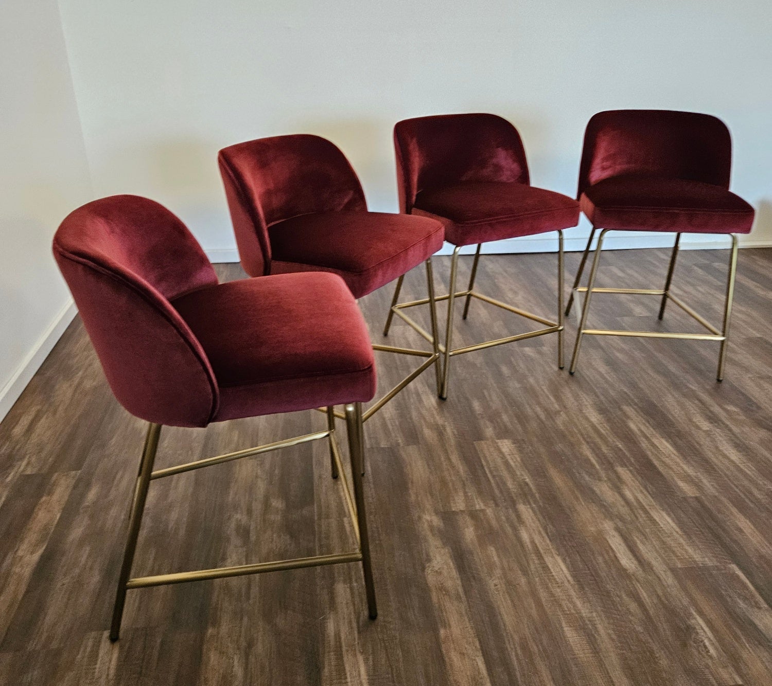 Set of Red Counter Stool Chairs Velvet- Free Delivery